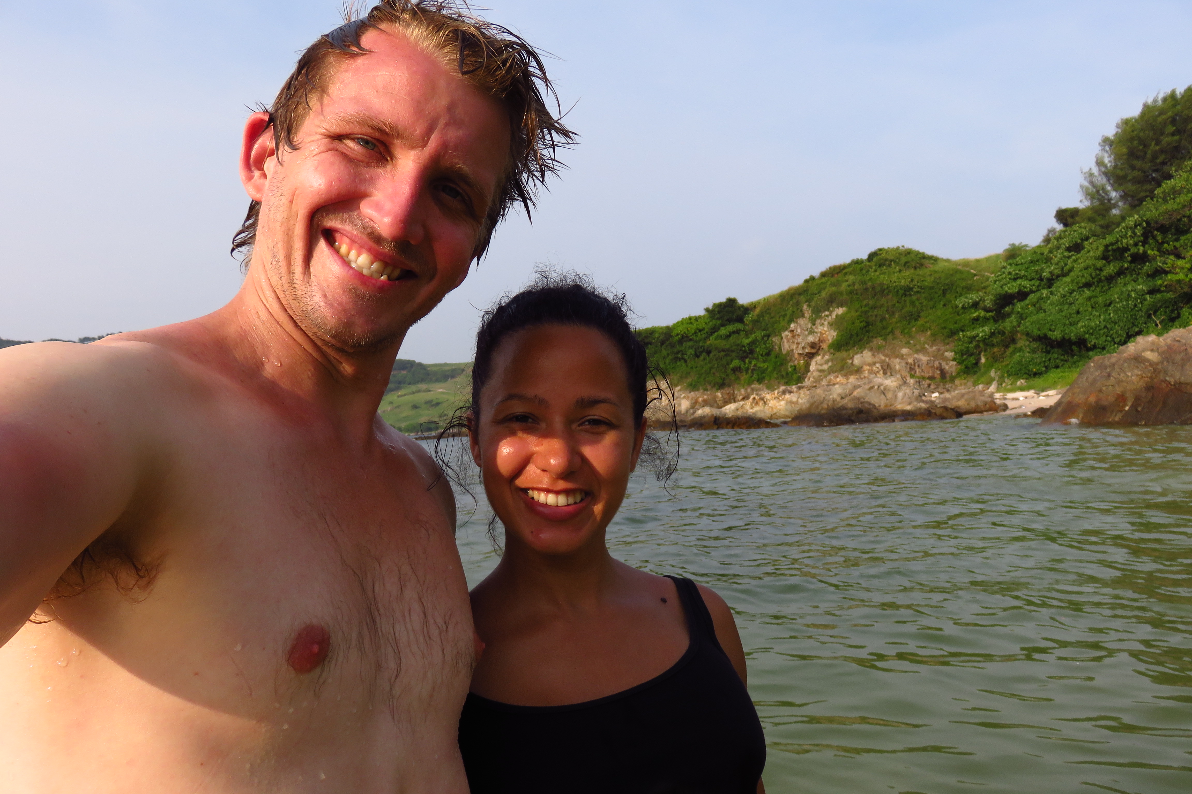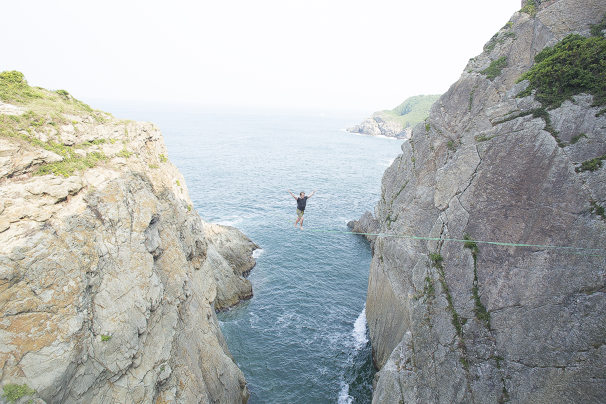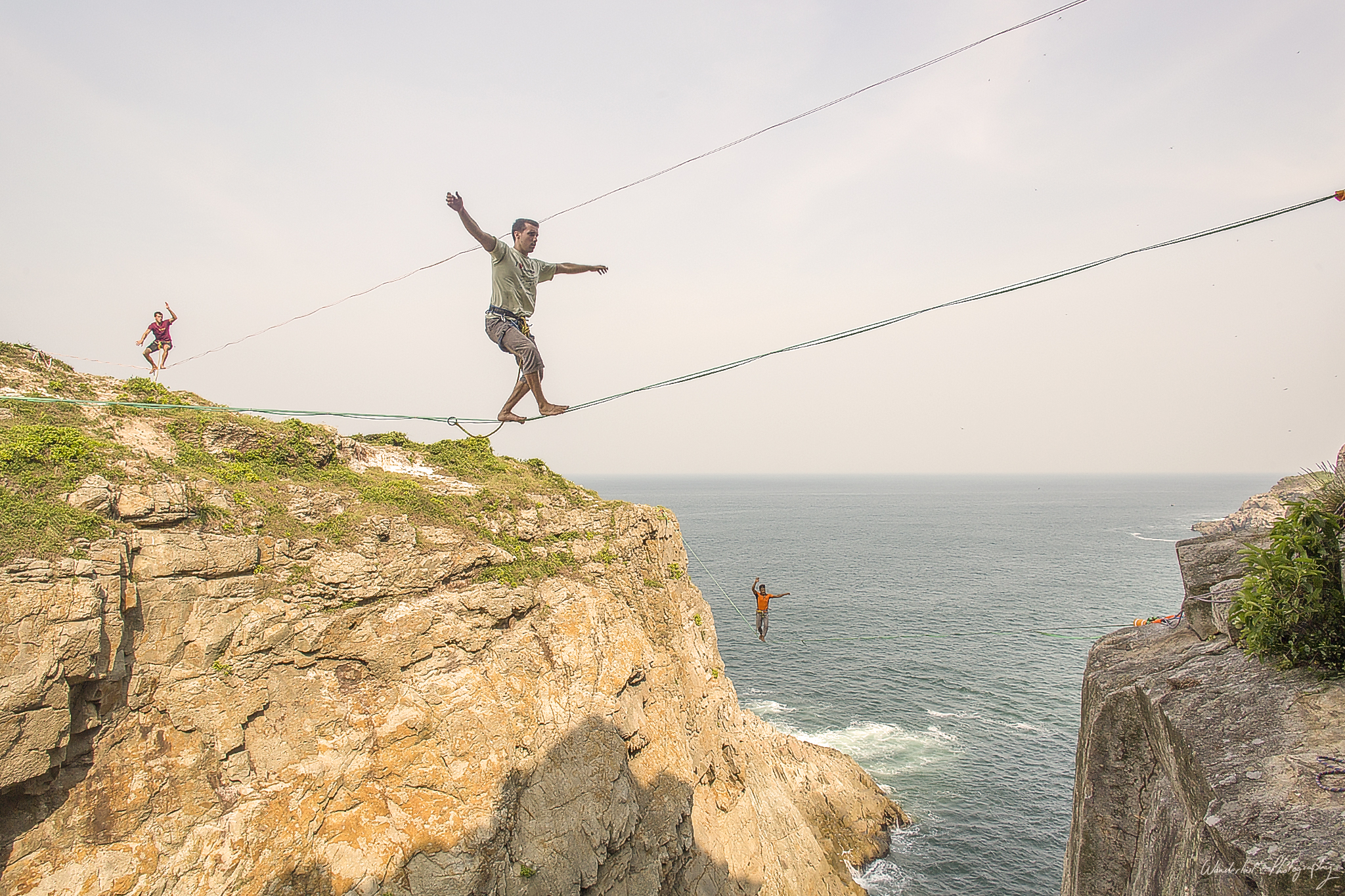 The train journey to Shenzhen went smoothly and we had the bottom bunks, so a more comfortable journey. From Shenzhen you walk over the border into Hong Kong (HK) and then you take the metro. Our couchsurfing hosts (Ken and Minnie) lived on the south side of Hong Kong Island, so we needed to also get a bus there. But before of all this, we had a ferry to catch to Tung Lung Island, as David had a highline meeting to attend! He had been touch with some guys living in China for months, trying to arrange a highline in China and luckily the dates worked out very well. So we stored our luggage at a metro station, had a quick brekky (actually one of our worst in China) and caught the 10:30 ferry. At the island Will was waiting for us and together with Maxim (a French highliner), we walked to the highline spot, meeting Daniel and the rest of the highliners. The highline community is incredibly warm and welcoming, we both felt straight away like old friends. It is a lot like couchsurfing in that regard.