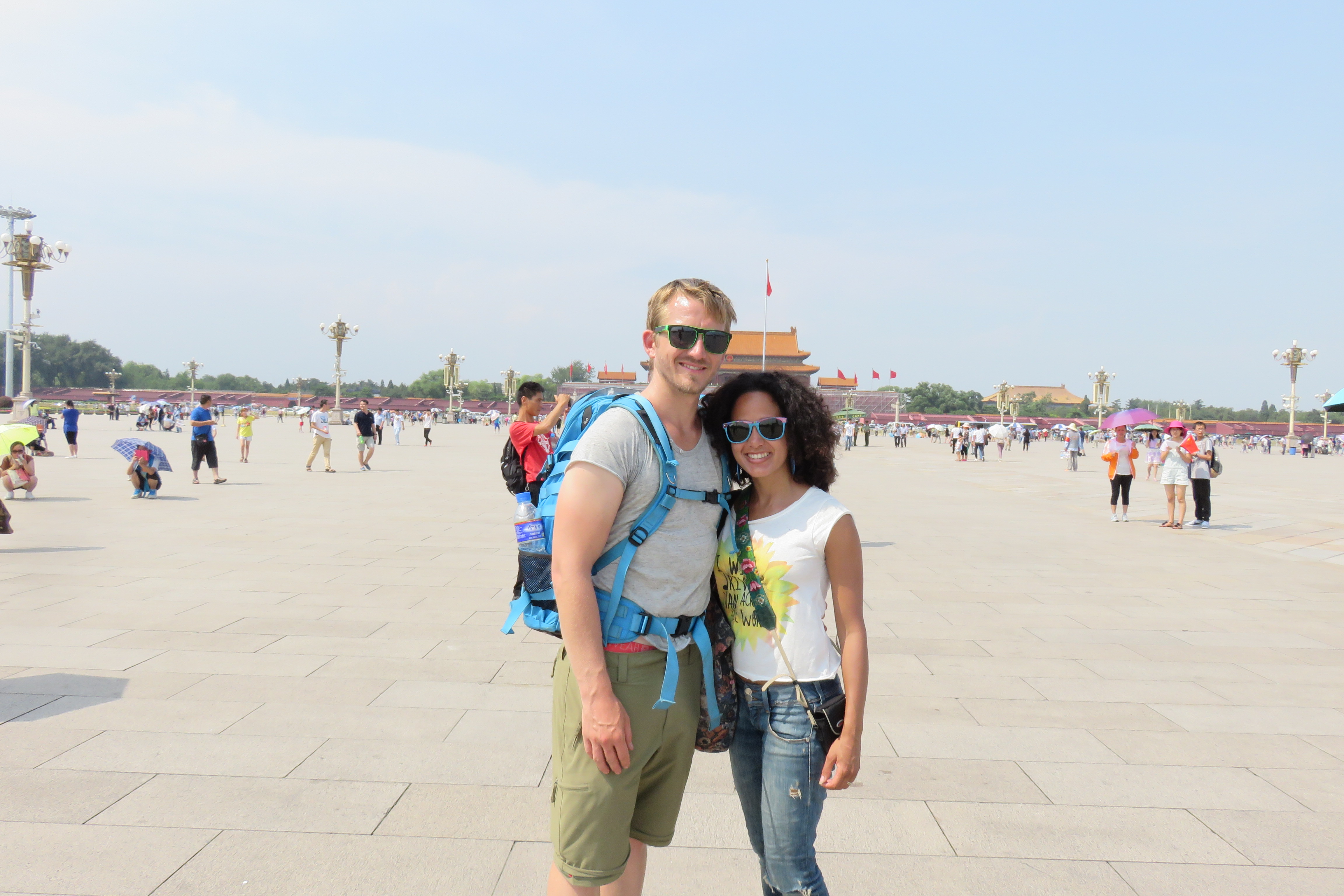 Our last day on the Trans-Mongolian Express :'(. We woke up in China (having fallen asleep in Mongolia) and looked out the window to be greeted by gorgeous mountain ranges. After arriving in Beijing around 11 am, we got some money out and checked our luggage at the train station. We then walked to Tienanmen Square, through back streets (On the way David grabbed a chicken and seaweed hamburger, which was super delicious)