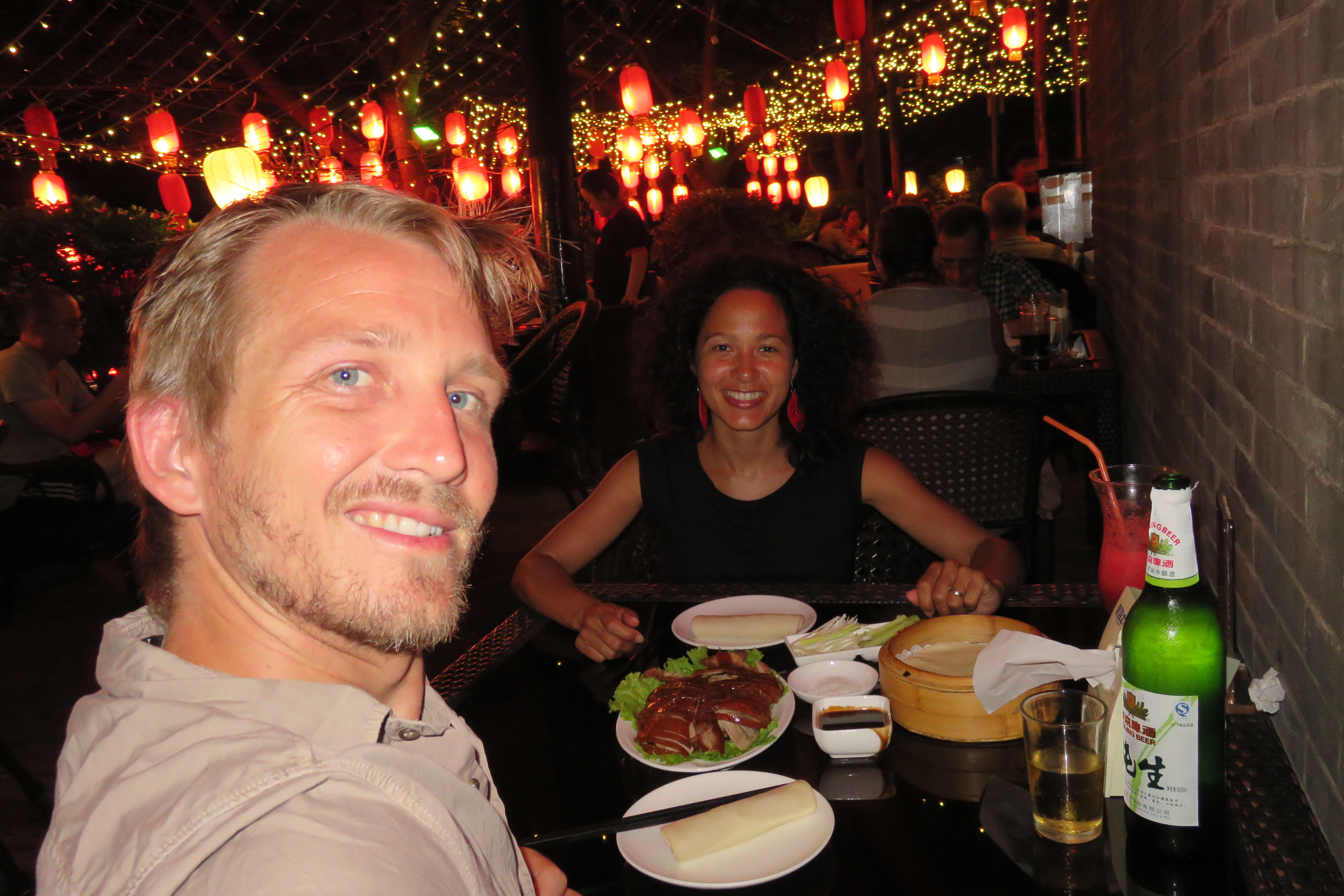 The next day we went out and wandered some hutongs, then went out for date night. We decided that every so often we would dress up and have a special evening together, as we spend every day together during this trip. We don’t want our relationship to get stuck in a rut (sleur in Dutch). So what else could you possible have on a date night in Beijing, other than Peking Duck? Well, ours was amazing, we even ordered some scallops to go along with it. Decedent deliciousness.
