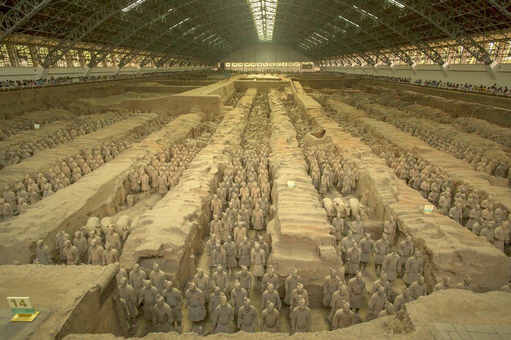 Thankfully, we were spared a further decent into madness as we entered Pit 1. This is what we had been waiting for and it really delivered the terracotta goodness we had read so much about (read: scanned Wikipedia the night before). 100s of well restored warriors and horses greeted us. All in their original positions. It was a pretty awe inspiring sight, worth having the sweat of a hundred different people rubbed on your shirt from pressing through frenetic crowds.
