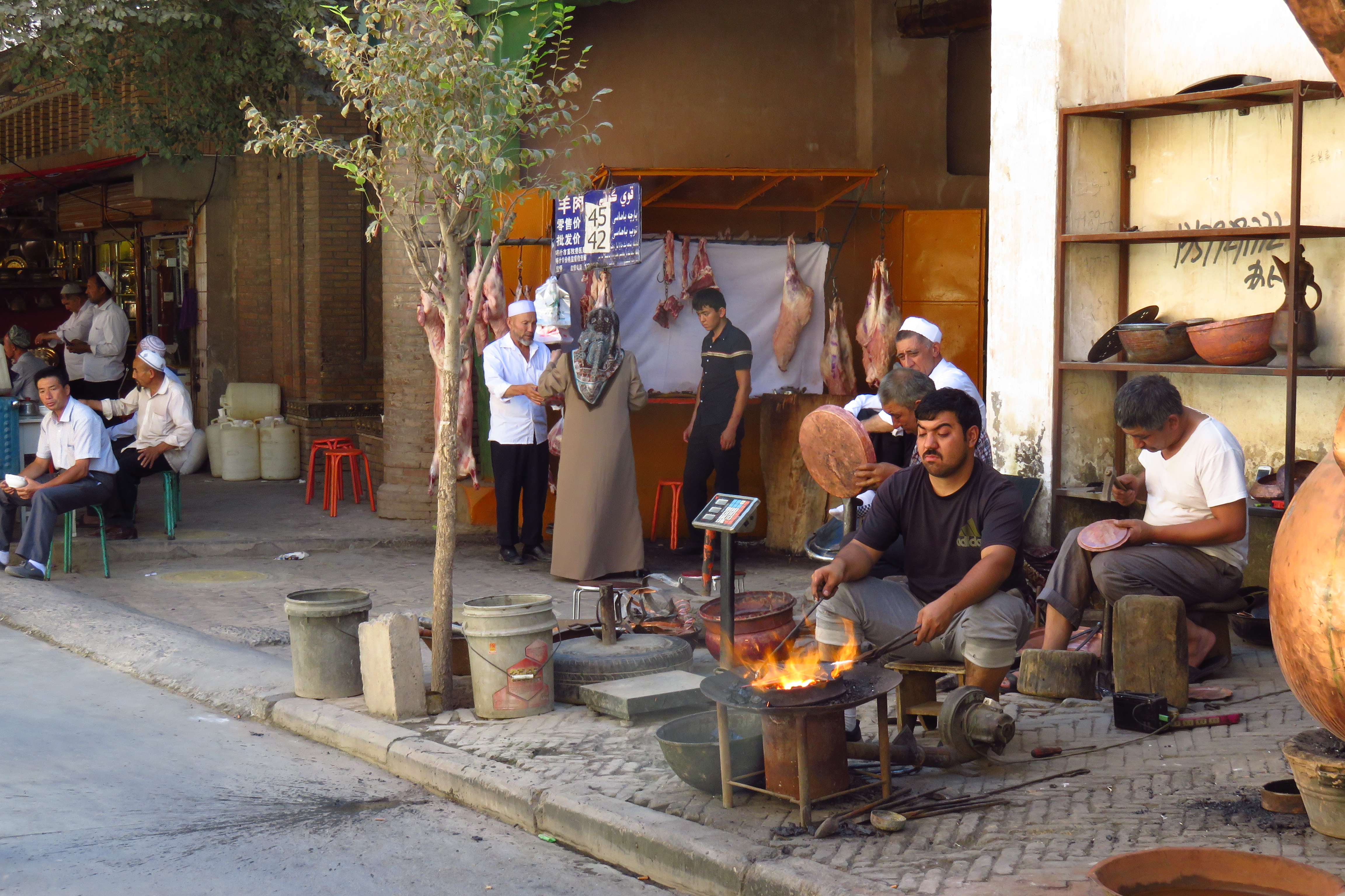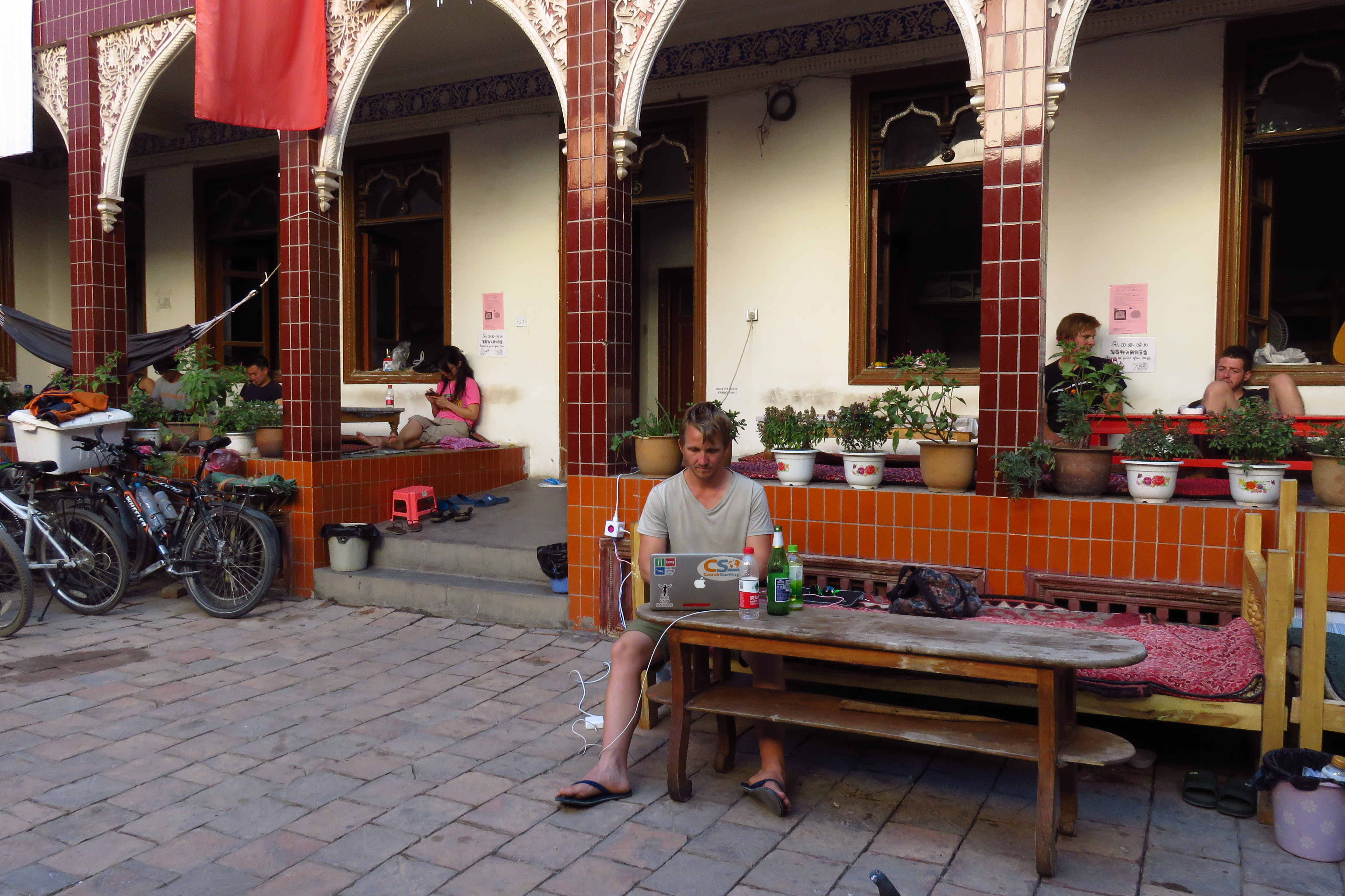 After 40 hours we arrived in Urumqi. We stored our luggage and walked into the city center entering an amusement park for free and walked up the hill to see the pagoda with a nice view over the city. Back at the train station we bought some food for dinner, had a great late lunch at a Muslim restaurant. In Urumqi you have the Han Chinese, but you also have the Uyghur ethnic group. They are Muslims and look different from Chinese, they look more like a mix of people from Turkey and the Stans. With 40 minutes left we picked up our luggage and tried to get into the train station. I mean, it is right there in front of us, should be fine, right? Oh shit, those are some long lines… We fought our way in front (Chinese style) and then we got picked out by security. (Security in Urumgi and Kashgar is very very serious and ubiquitous. Military with guns at every corner, bayonets already on). David had to open his backpack and they took his pocket knife out. There went our belief that as westerosies (demonym for people from Westeros. We call ourselves westerosies, instead of westerners. Yes, we are developing our own ‘in’ terms) we are untouchable ;-). The clock was ticking and after telling security that we didn’t have time for this shit (in nearly as many words) as our train was about to leave, they let us go. Running up the escalators, down the stairs and run into the train. Another train that we just made in time. The last train in China brought us to Kashgar. We had the bottom beds and a 4 person carriage, such a luxury. Such luxury in fact, that everyone had gotten off the train in Kashgar, before we realized that we had arrived at the right stop!