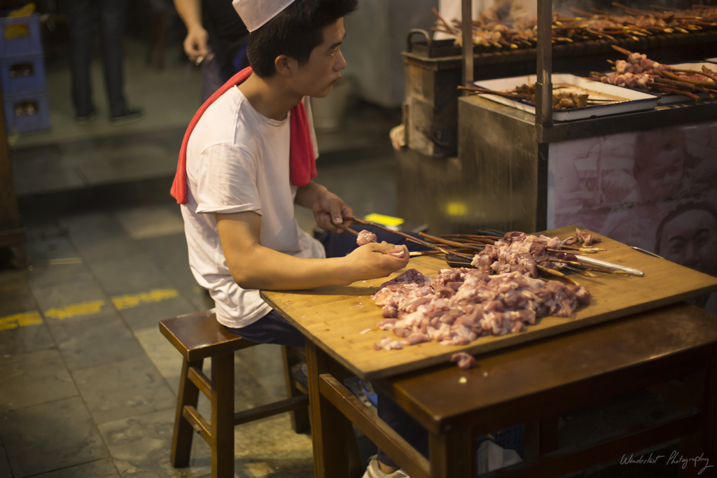 Our last night in Xian we went out for dinner in the Muslim quarter again, a street with many different dishes and much life and character. Here are some of the awesome food sights to behold on this street:
