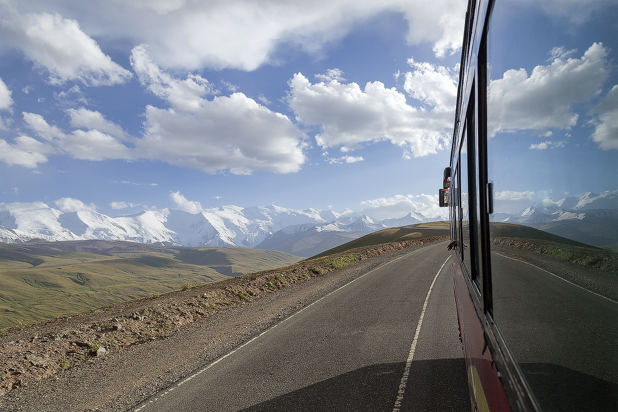 We didn’t see a lot of Osh in the end, because we only stayed for one day and we used that day for getting our administration in order, our washing done and arranging a ride to Bishkek for the following day. As the normal taxi driver from the hostel was already on his way to Bishkek, the hostel arranged something else. In the morning we found out that we were traveling with a businessmen in his BMW X5. Not bad, especially since Tamar wasn’t feeling to well that day.