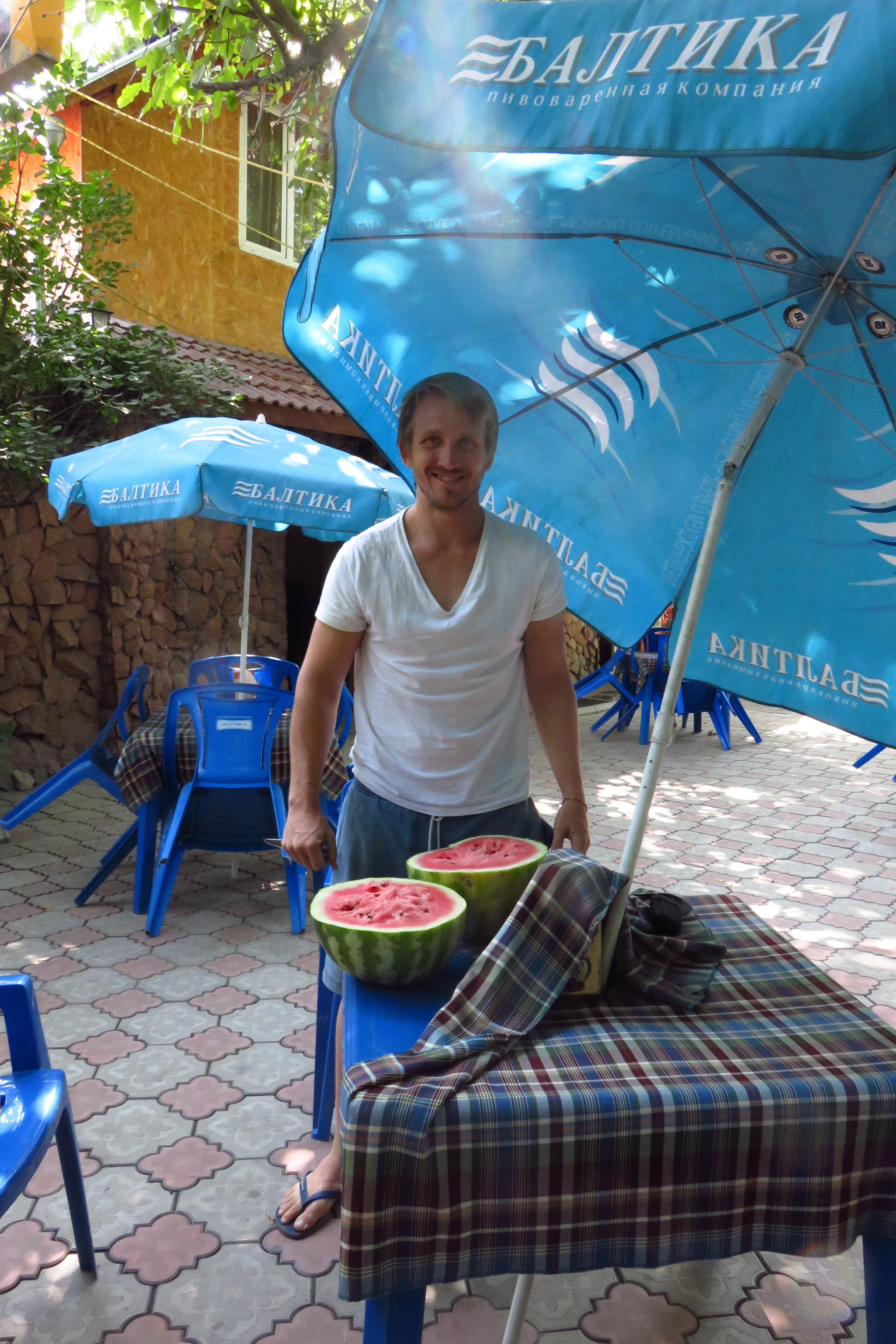 We spent the next day sorting out our Uzbekistan visa (forgetting to bring money to pay for it and having to take the taxi back to the hotel to pick it up) and generally relaxing, eating a vast quantity of watermelon and snoozing.