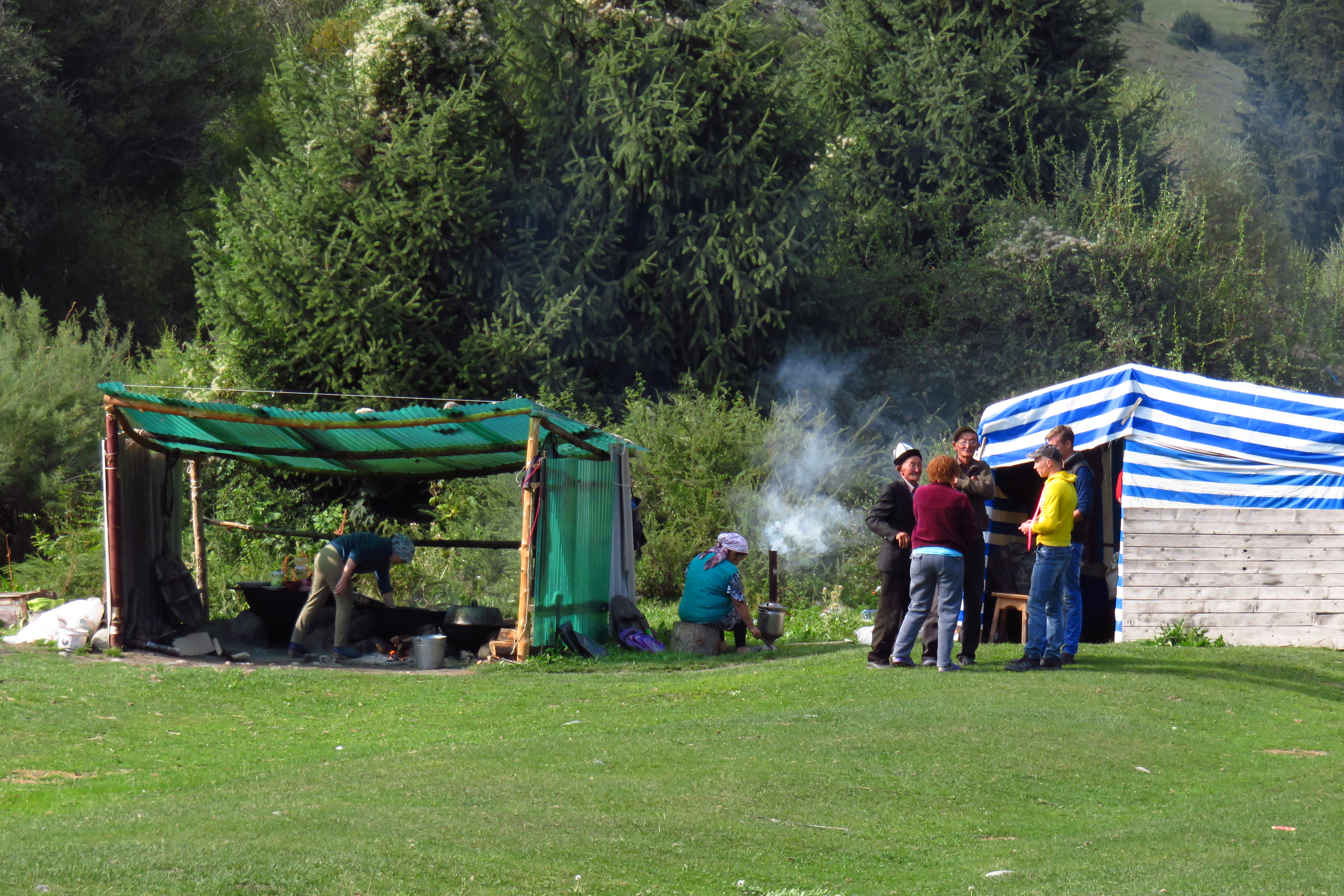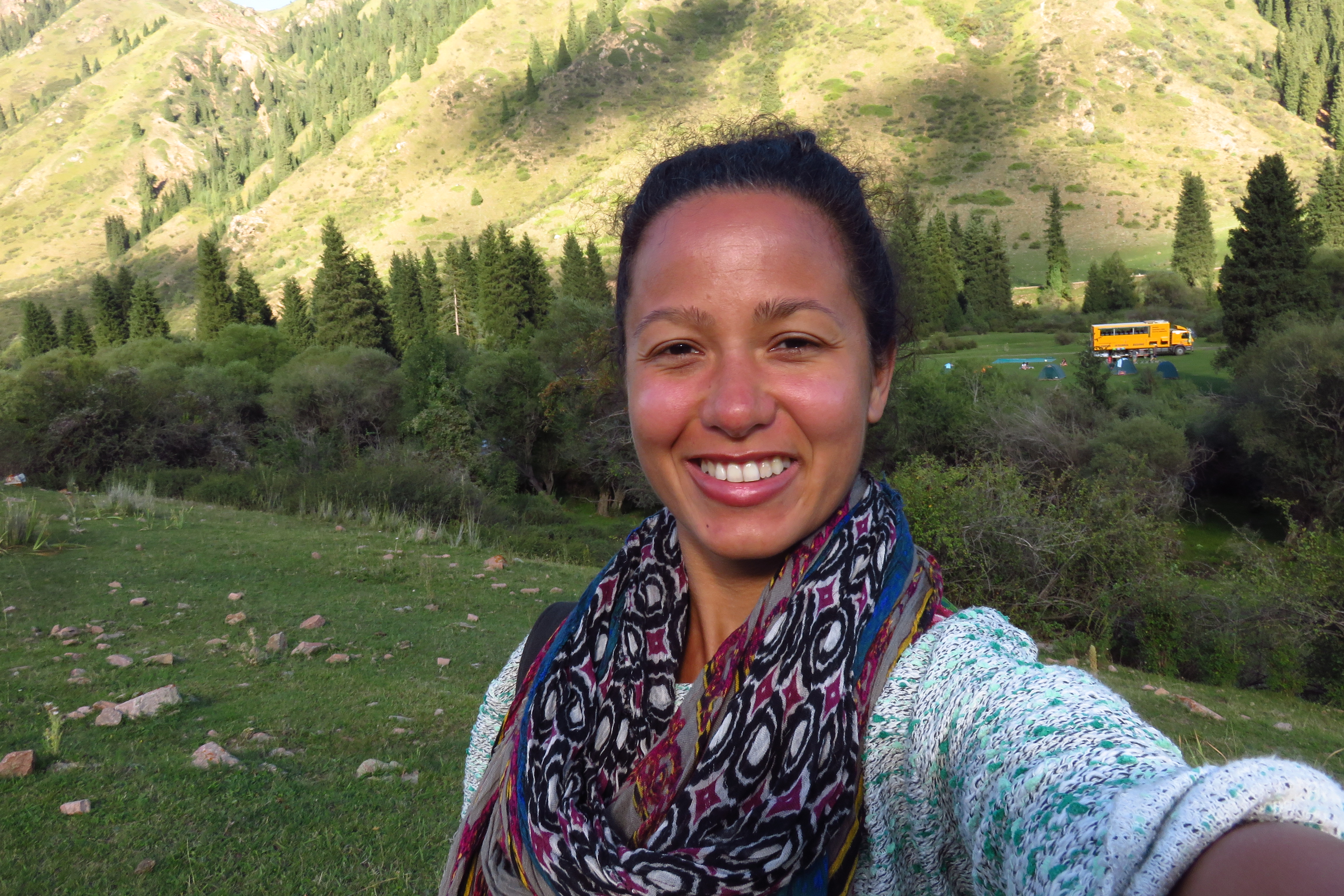 Our first stop: Ala-Archa Nature reserve, where we would spend two nights. When we got there and had setup our sturdy tents, both of us slept away the rest of the afternoon (as we both didn’t feel well yet), in the hammock and tent. We had our first dinner of the tour (we were all assigned cooking groups and each group cooks a dinner, breakfast and lunch) and sat around afterwards (in the cold and dark), getting to know each other.