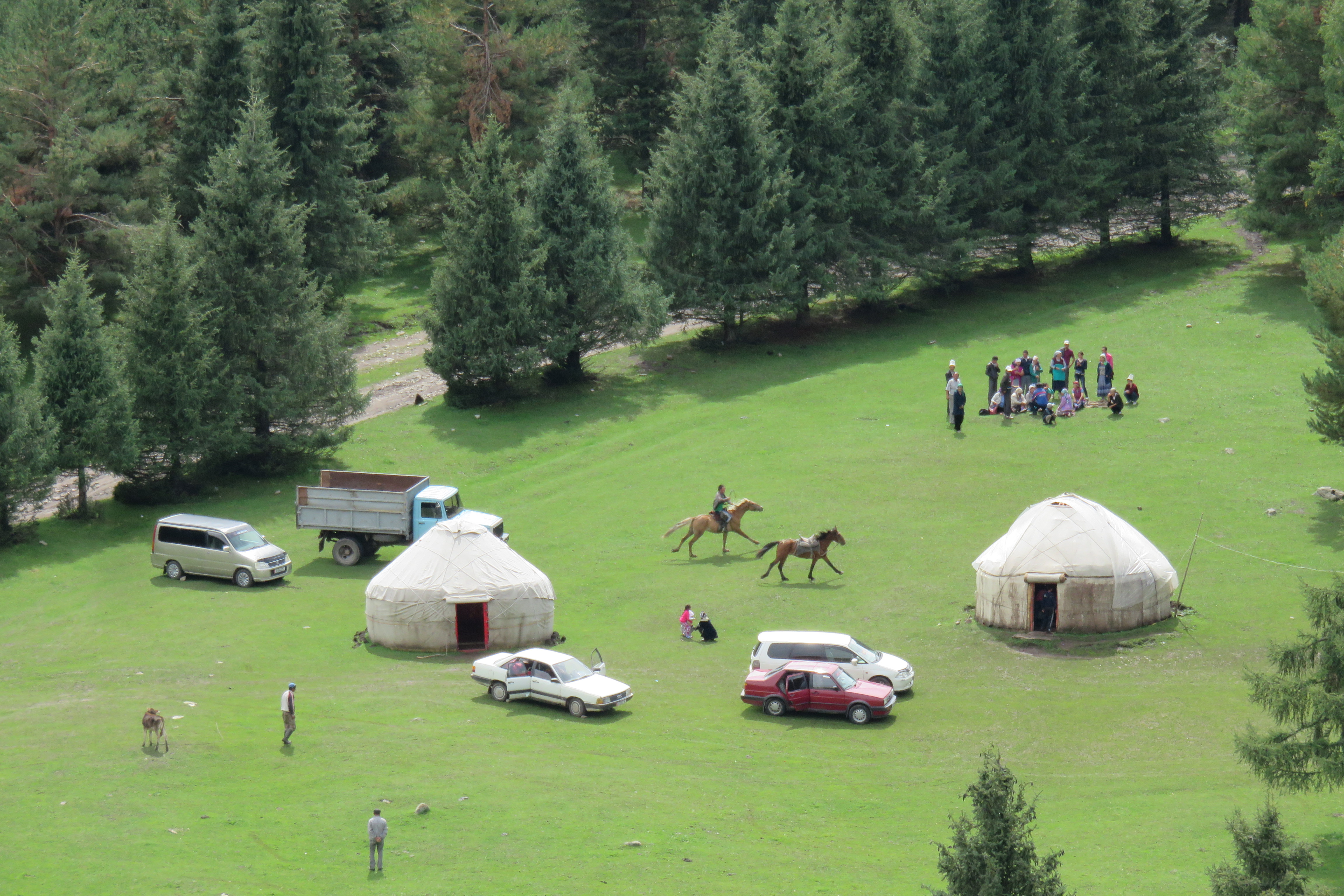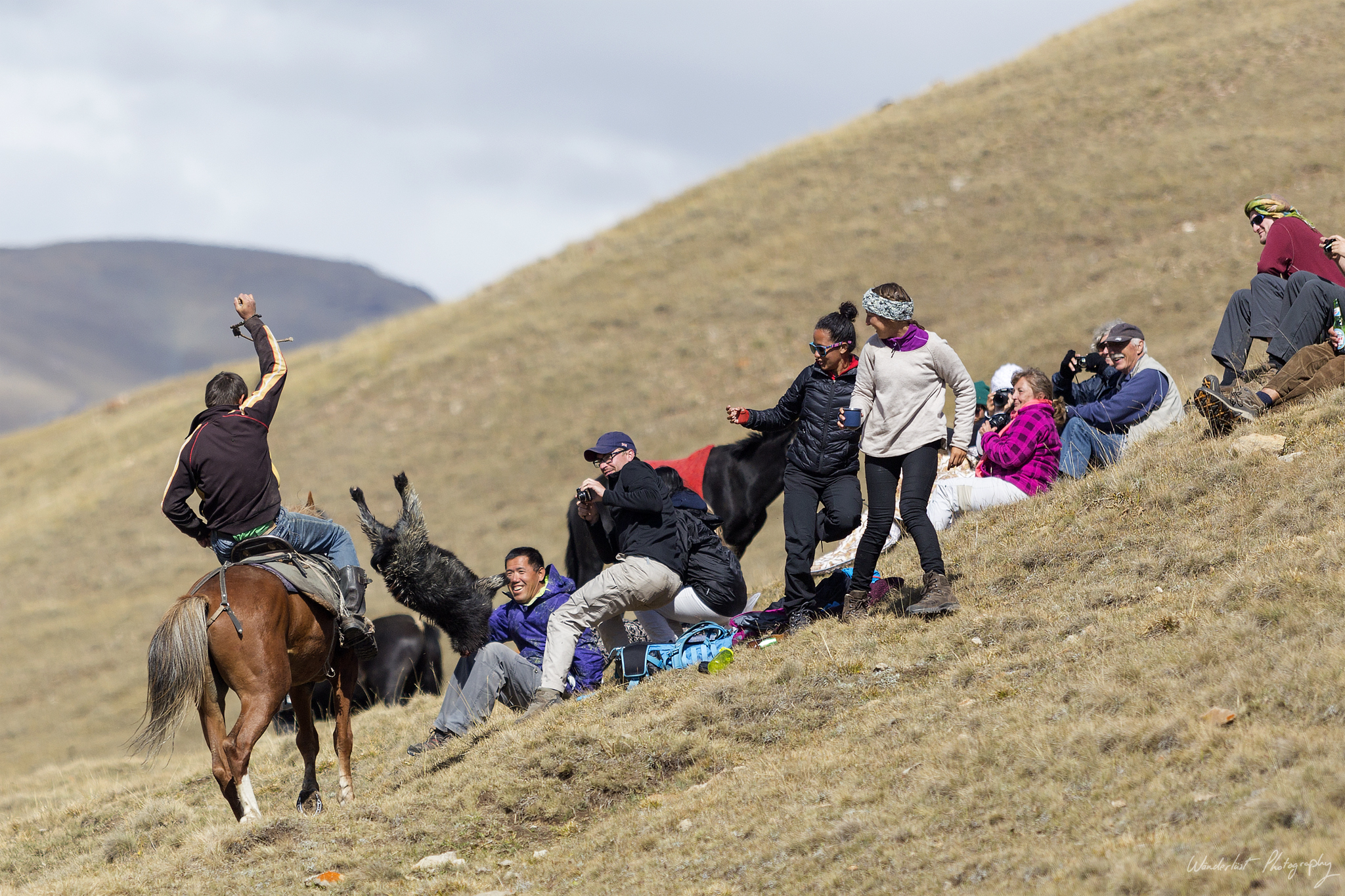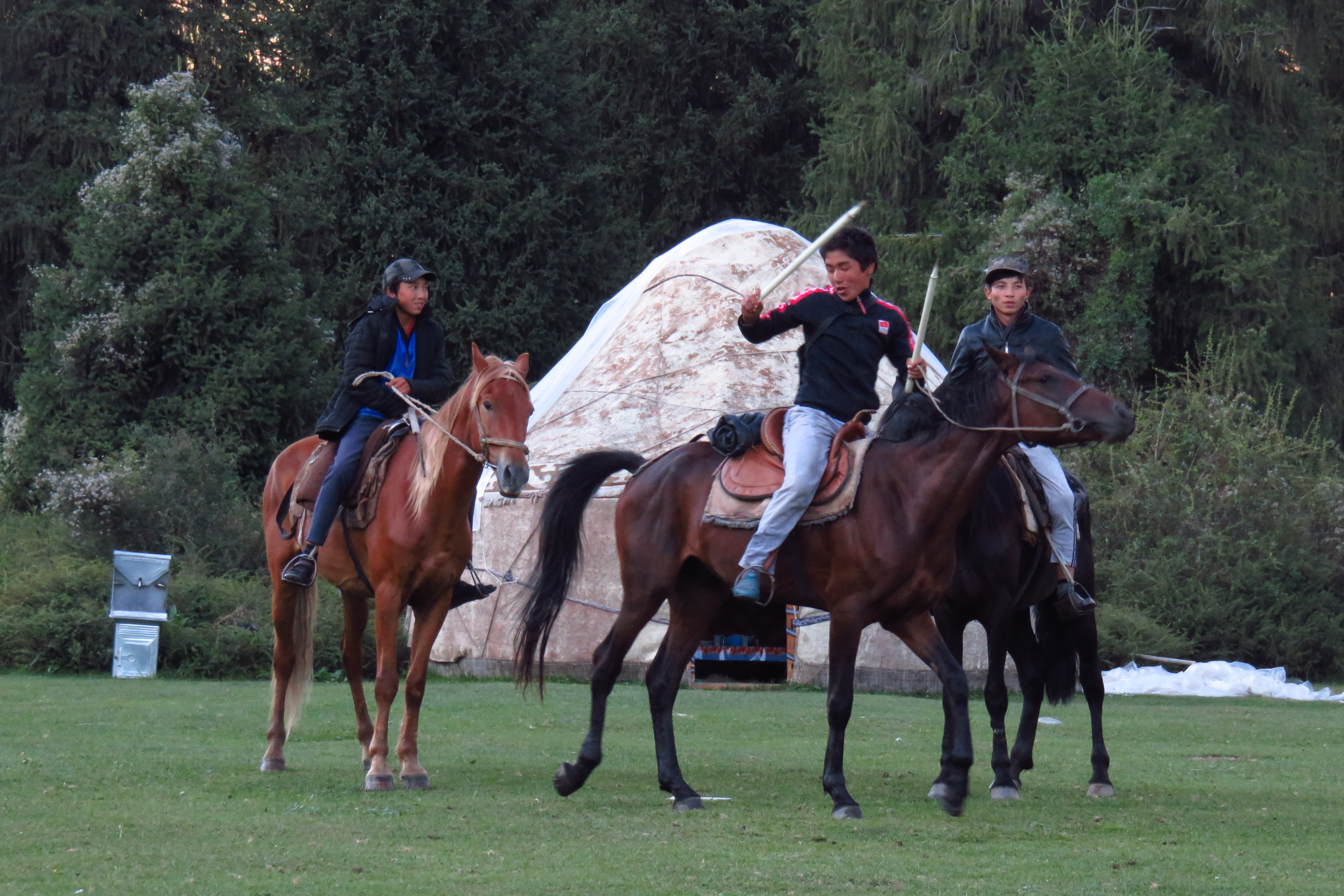 So, what do you do for fun when you live in a remote place, with a lot of livestock and horses? Well, you play polo of course! Kim (our tour guide) organised the locals to play a game for us. They brought a live goat, cut its head off and proceeded to play the most entertaining sport ever. They played 3-a-side, the object is to get the goat onto a cloth, without having it taken from you by the opposing team. The horses sometimes got close, very close and sometimes, for no apparent reason they would bring the goat up and throw it towards the crowd. Very entertaining and they gutted it and cooked it afterwards, no waste here.