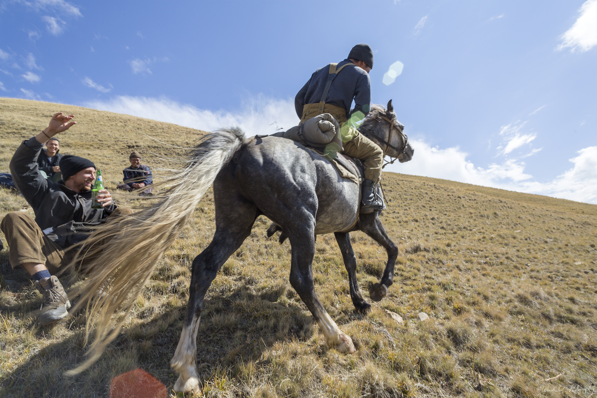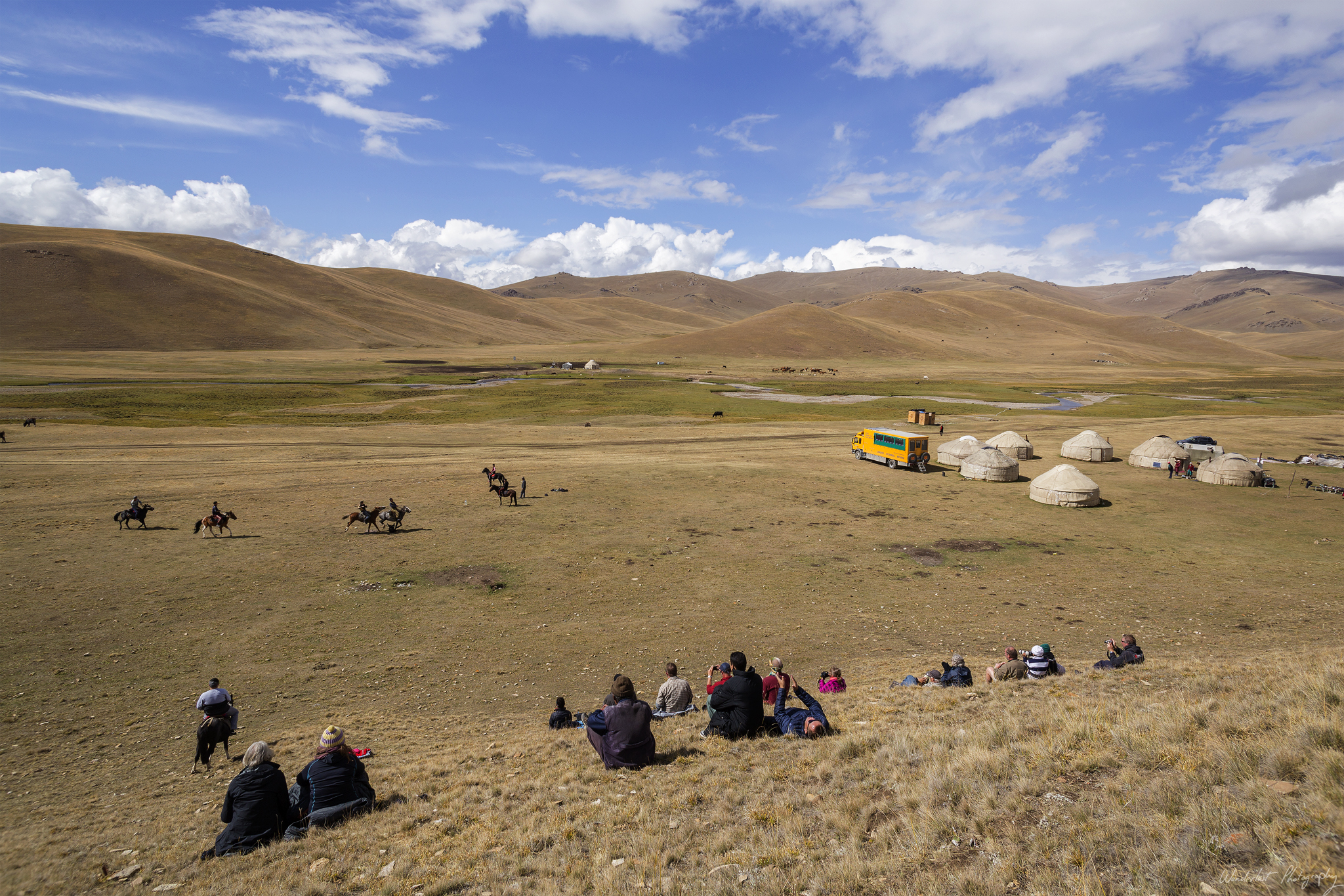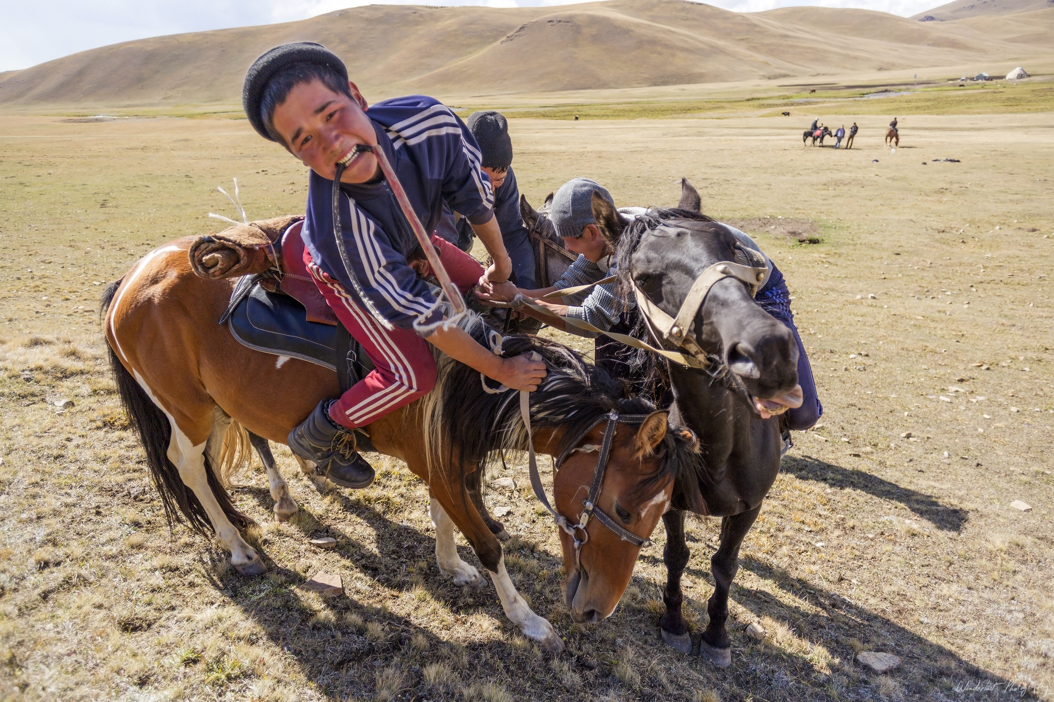 So, what do you do for fun when you live in a remote place, with a lot of livestock and horses? Well, you play polo of course! Kim (our tour guide) organised the locals to play a game for us. They brought a live goat, cut its head off and proceeded to play the most entertaining sport ever. They played 3-a-side, the object is to get the goat onto a cloth, without having it taken from you by the opposing team. The horses sometimes got close, very close and sometimes, for no apparent reason they would bring the goat up and throw it towards the crowd. Very entertaining and they gutted it and cooked it afterwards, no waste here.