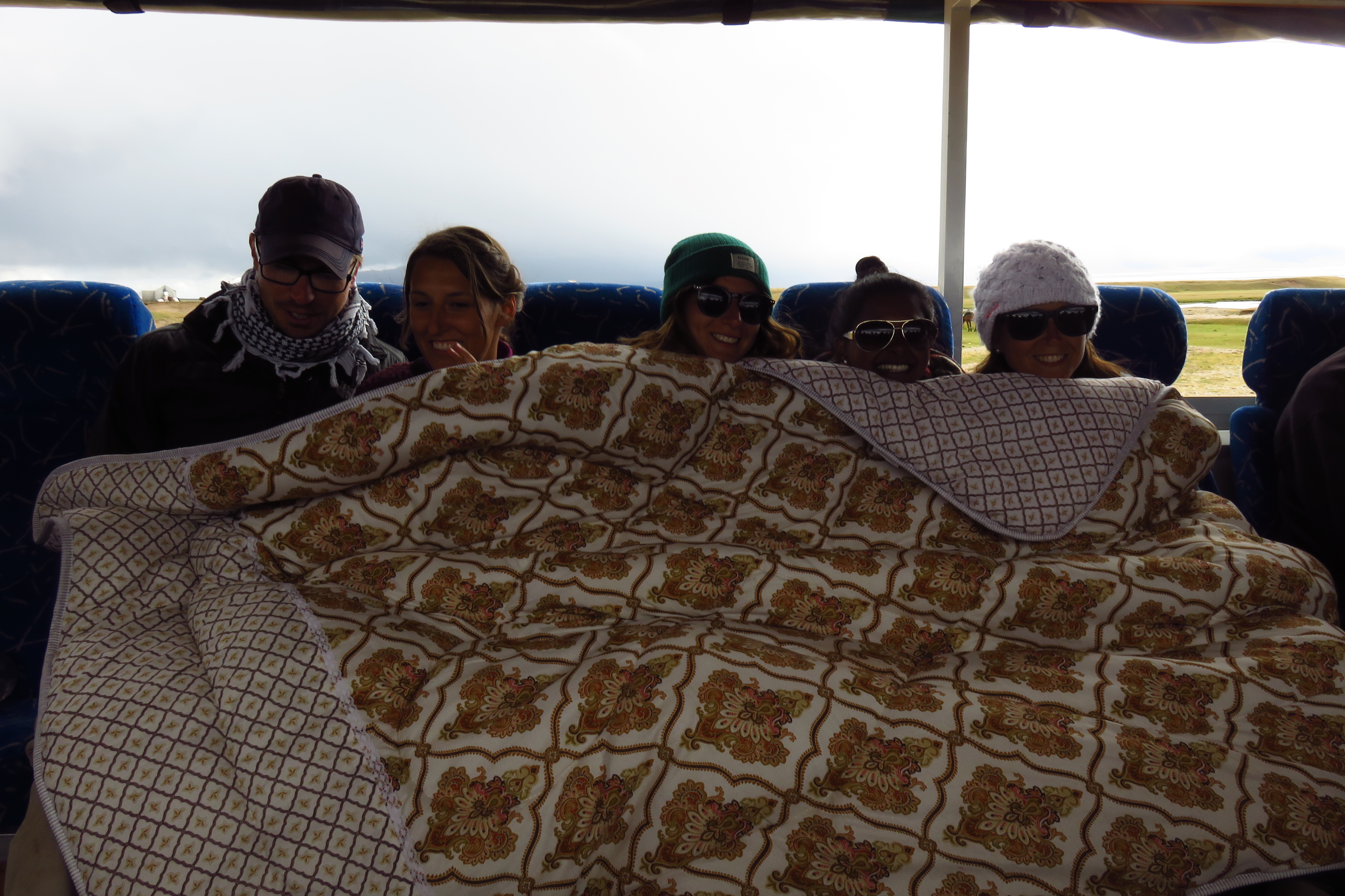 We arrived at the meeting place, not entirely sure what to expect. We were pleasantly surprised, with a bigger mix of young and old (in the next days we would find out that is was a perfect mix with very enjoyable and interesting people/travelers) and the truck looking even more impressive in real life. We packed our bags, stopped off at the Bishkek market so everyone could grab anything they were missing (read: beer and spirits, but also warm blankets as we were warned for very cold nights). David lay dying in the truck during this time, while Tamar did some exploring.