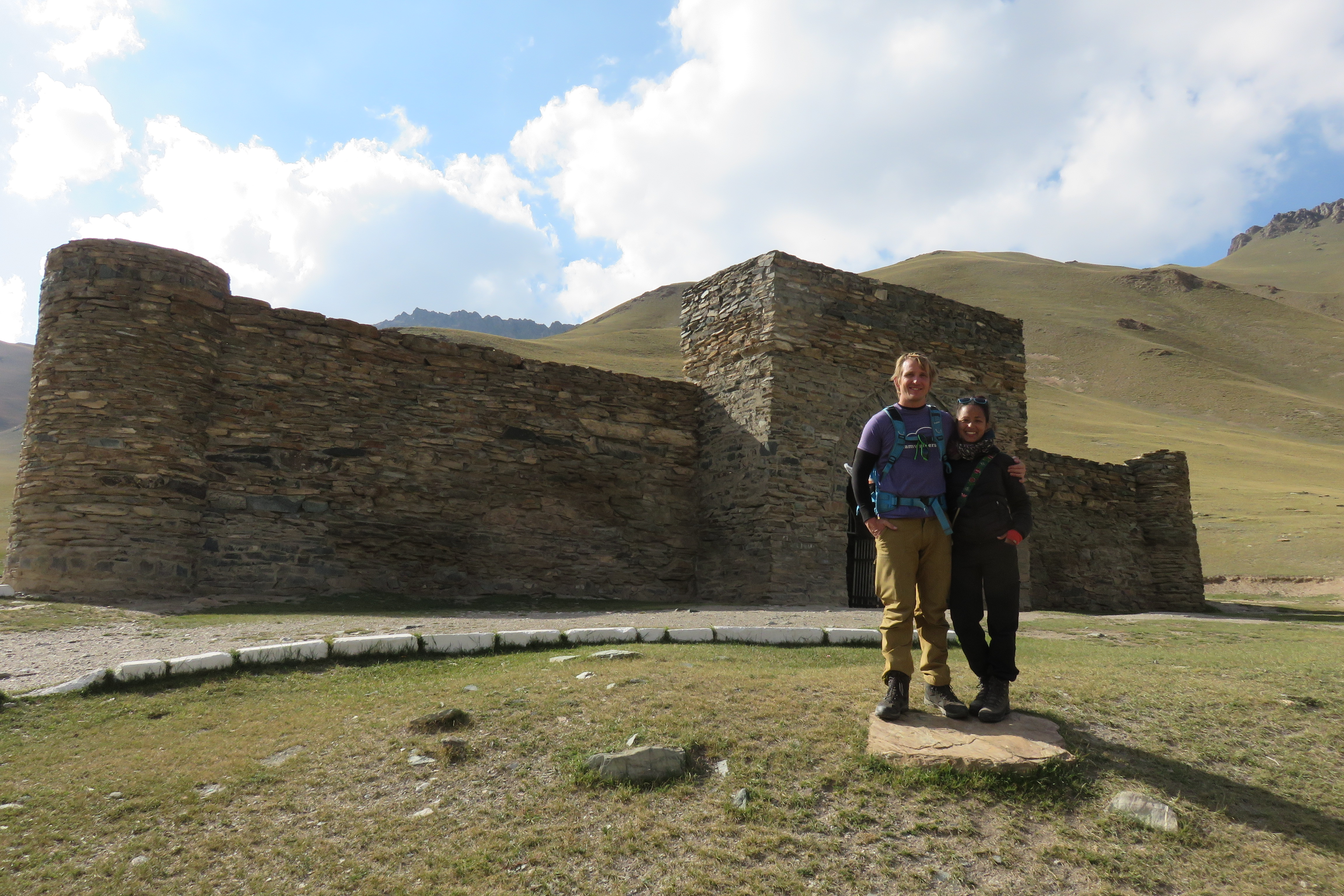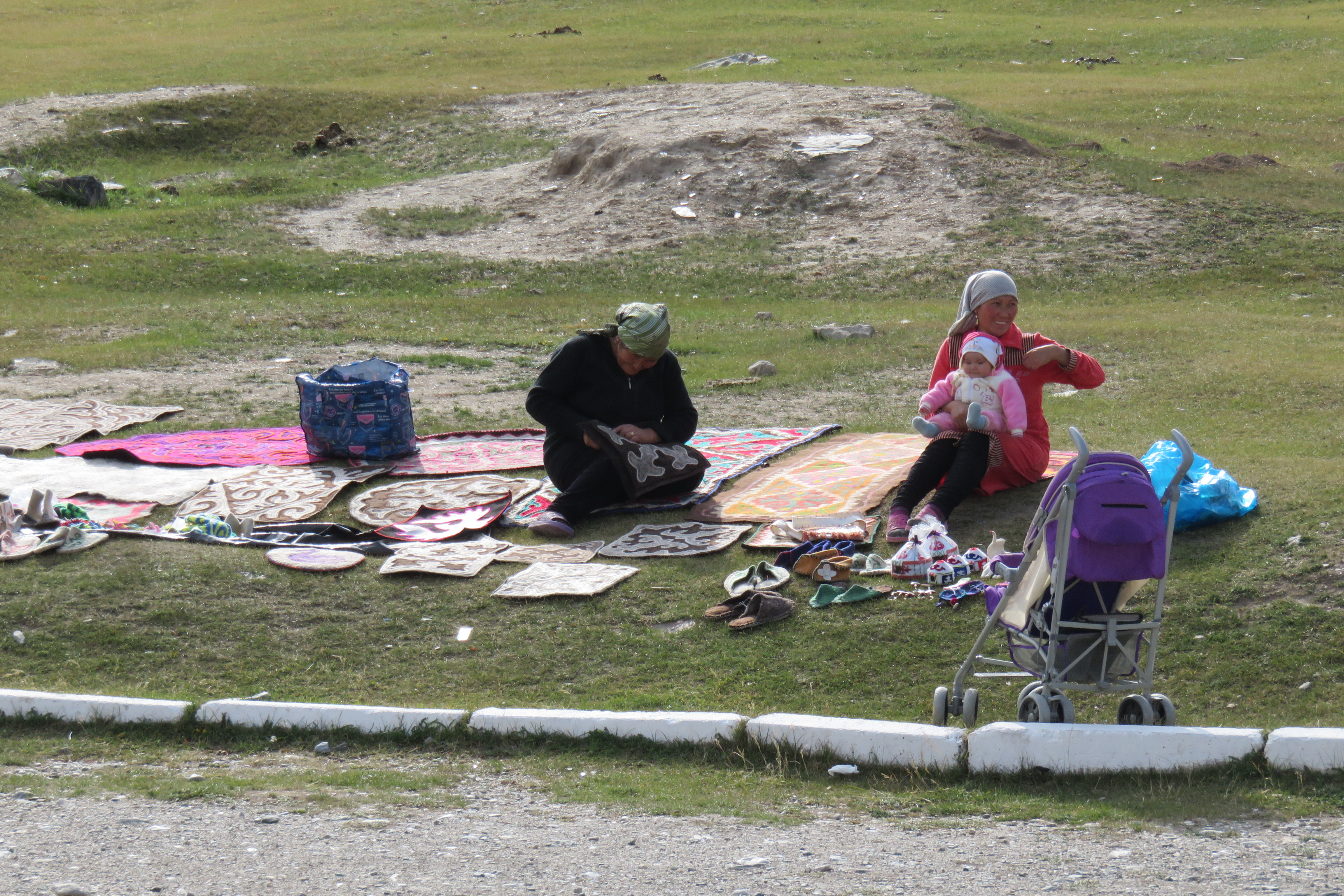 Our main objective was one of the most intact caravanseri (a building which traders on the silk road stopped at), located at 3100m. It was amazing! We could explore all inside, with no barriers to stop you from exploring the unlit rooms, with wells of 15m… Outside the building some nomad women were earning a couple of months salary by selling the carpets, toys and slippers they made themselves to almost all of our tour group members. Tamar wished she could have bought something too, but in every country she has to leave all the beautiful things in the shops as nothing else fits into our backpacks. This is not easy for her and she will probably regret some of the not buys when she is back home. A well, a good reason to go back to these countries in the future 😉