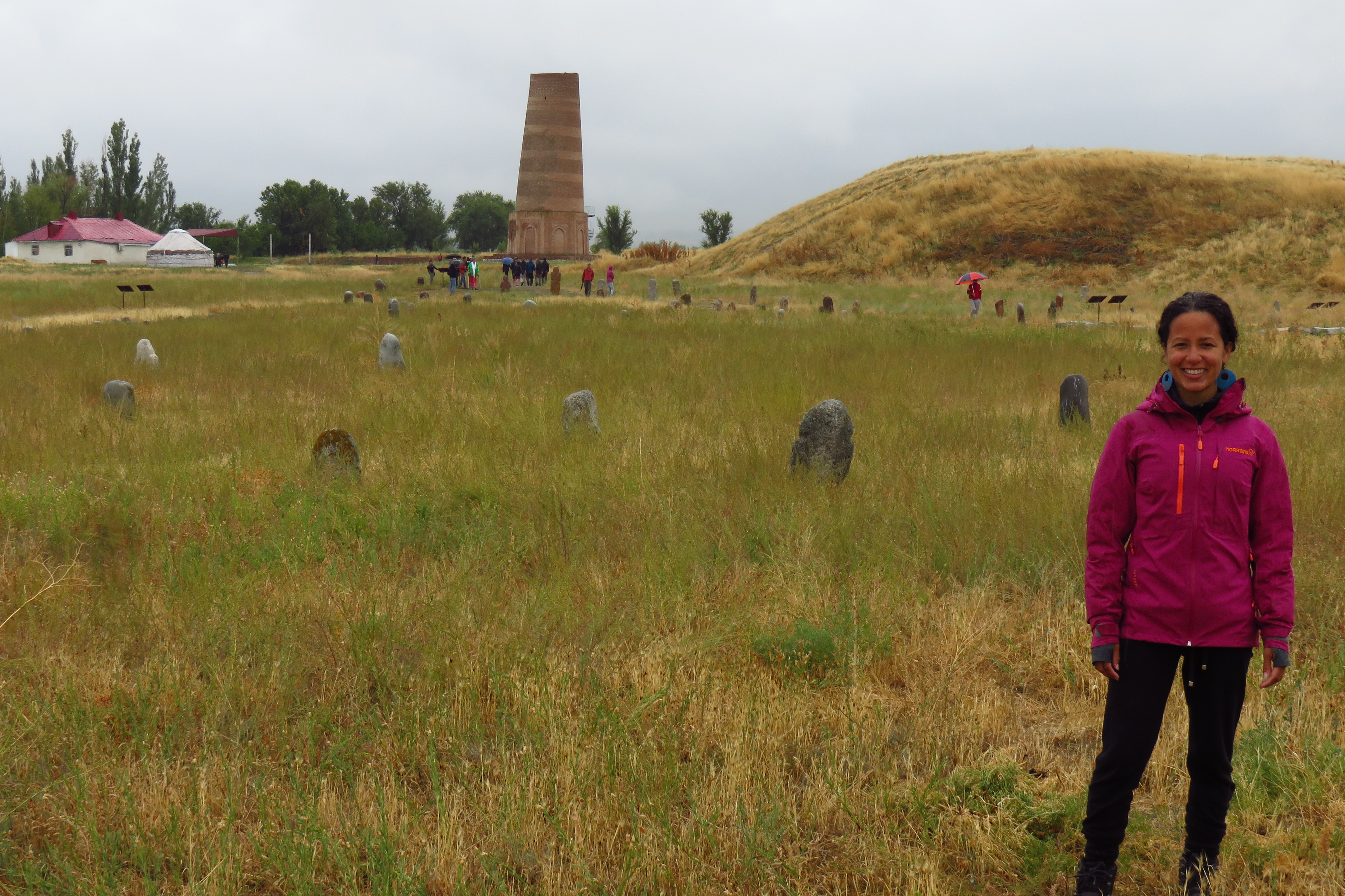 Last day of Kyrgyzstan tour. We cleaned the truck out, and headed off to Bishkek in the rain. David started a list of books and movies, which kept us all in high spirits. Our lunch stop was right beside the Burana Tower, which dates from 999AD, but suffers a bit from some soviet ‘reconstruction’ (not always sympathetic to the original style). Whilst the stairs were excitingly steep and delightfully claustrophobic, the view from the top (24m high) was quite nice.